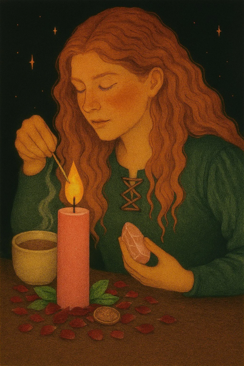 Hold the rose quartz and say: “Heart open wide, love draw near, With gentle touch and words sincere.”