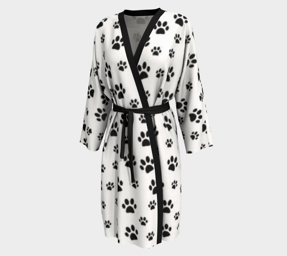 Wrap yourself in cozy charm with our Heart Paw Peignoir, featuring a custom printed design of adorable cat paws shaped like hearts. Available in ultra-soft Peachskin Jersey, airy Chiffon, or luxurious 100% Silk Twill, this versatile robe drapes beautifully and feels like a hug. Each peignoir is handmade to order in Montreal, Canada with premium finishing details, bamboo trim, and matching belt—perfect for fireside eggnog, self-care Sundays, or stylish lounging with your favorite furry friend.